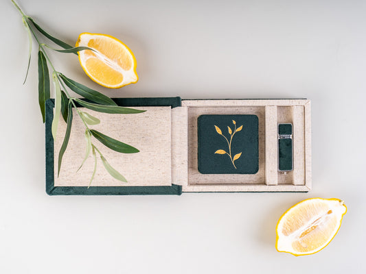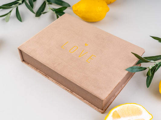 Vsaka ljubezenska zgodba je edinstvena – zasluži svoj prostor, kjer bo ohranjena s toplino in osebno noto. Kolekcija A love story združuje žametne spominske škatle, USB škatlice z mini zložljivimi fotoknjigami ter mini zložljive fotoknjige v romantičnih barvah in motivih, ustvarjenih za vaše najlepše trenutke. Izbirate lahko med romantičnimi barvami: roza, bež, rjava, zelena, modra, bela in črna. Motiv naslovnice lahko prilagodite: listki, srce, love, You & Me ali listki z inicialkami, kar naredi vsak izdelek popolnoma personaliziran in unikat. Ti izdelki niso le darilo, ampak tudi način, da vaše spomine ohranite za vedno – na elegantnih in kakovostnih materialih, ki zagotavljajo dolgo obstojnost barv in detajlov. Idealno za obletnice, poroke, zaroke ali preprosto za shranjevanje vajinih najlepših trenutkov.