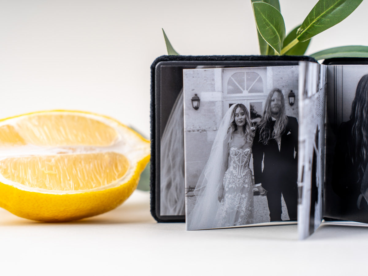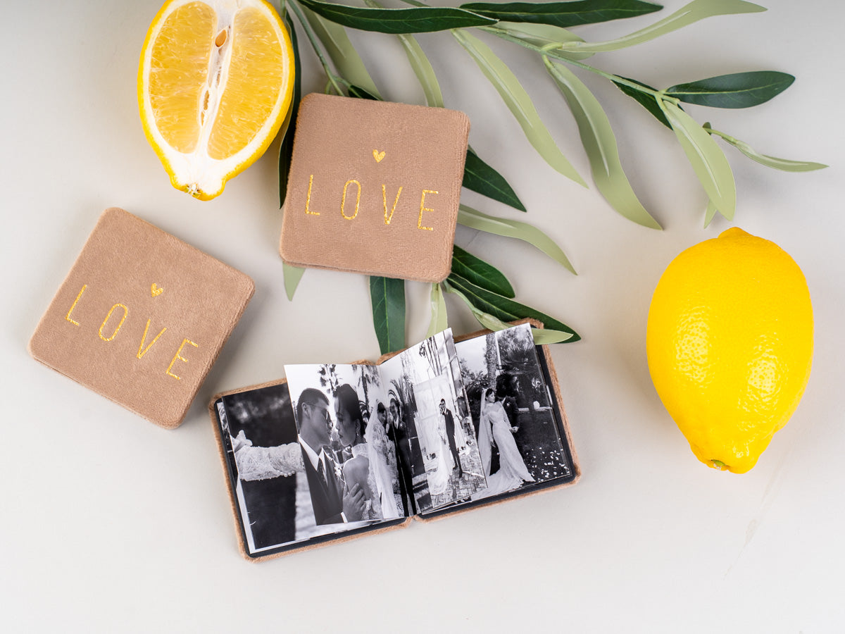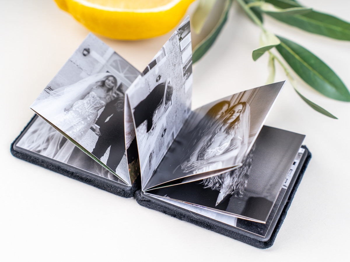 Mini, a neprecenljiva. Žametna Mini zložljiva fotoknjiga je droben zaklad, ki v sebi skriva najlepše zgodbe ljubezni, topline in povezanosti. V prefinjeni žametni preobleki in kompaktnem formatu omogoča, da največji spomini zasijejo v majhni, čarobni knjigi.