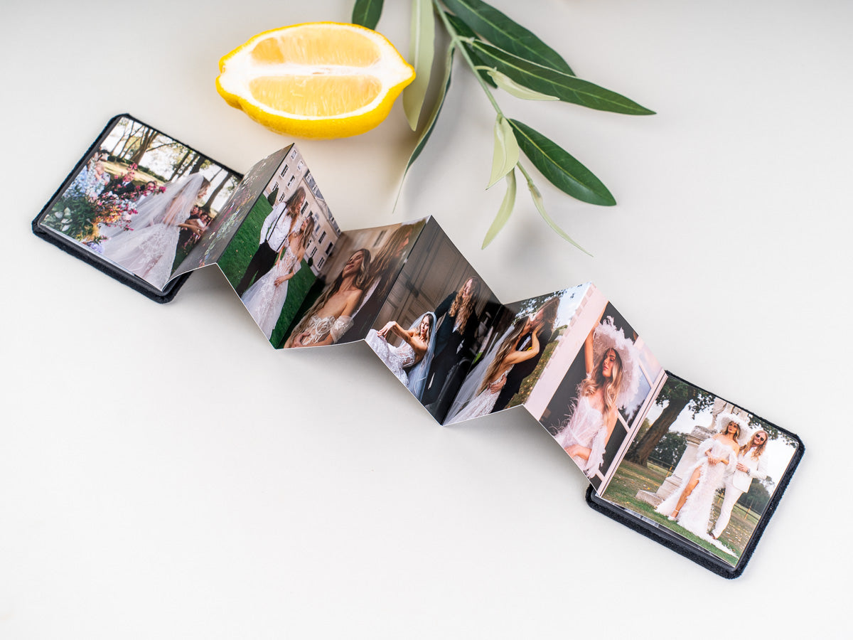 Mini zložljiva foto knjiga, ki omogoča prikazovanje najlepših fotografij v kompaktni obliki – kot nalašč za darilo, ki ohranja spomine ljubezni! Izberite najlepše fotografije in jih združite v čudovito foto knjigo.