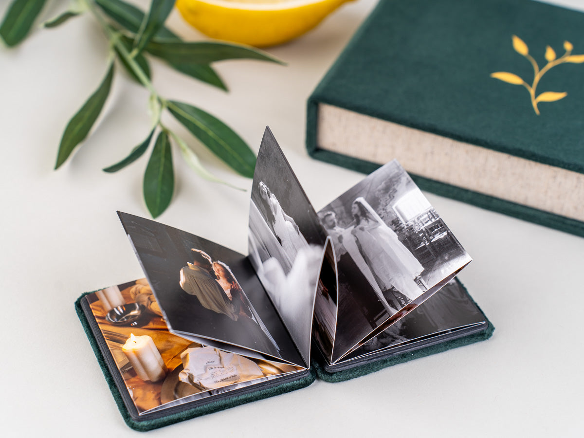 - Mini zložljiva fotoknjiga (8x8 cm) – harmonika format, idealen za izbor najlepših spominov.