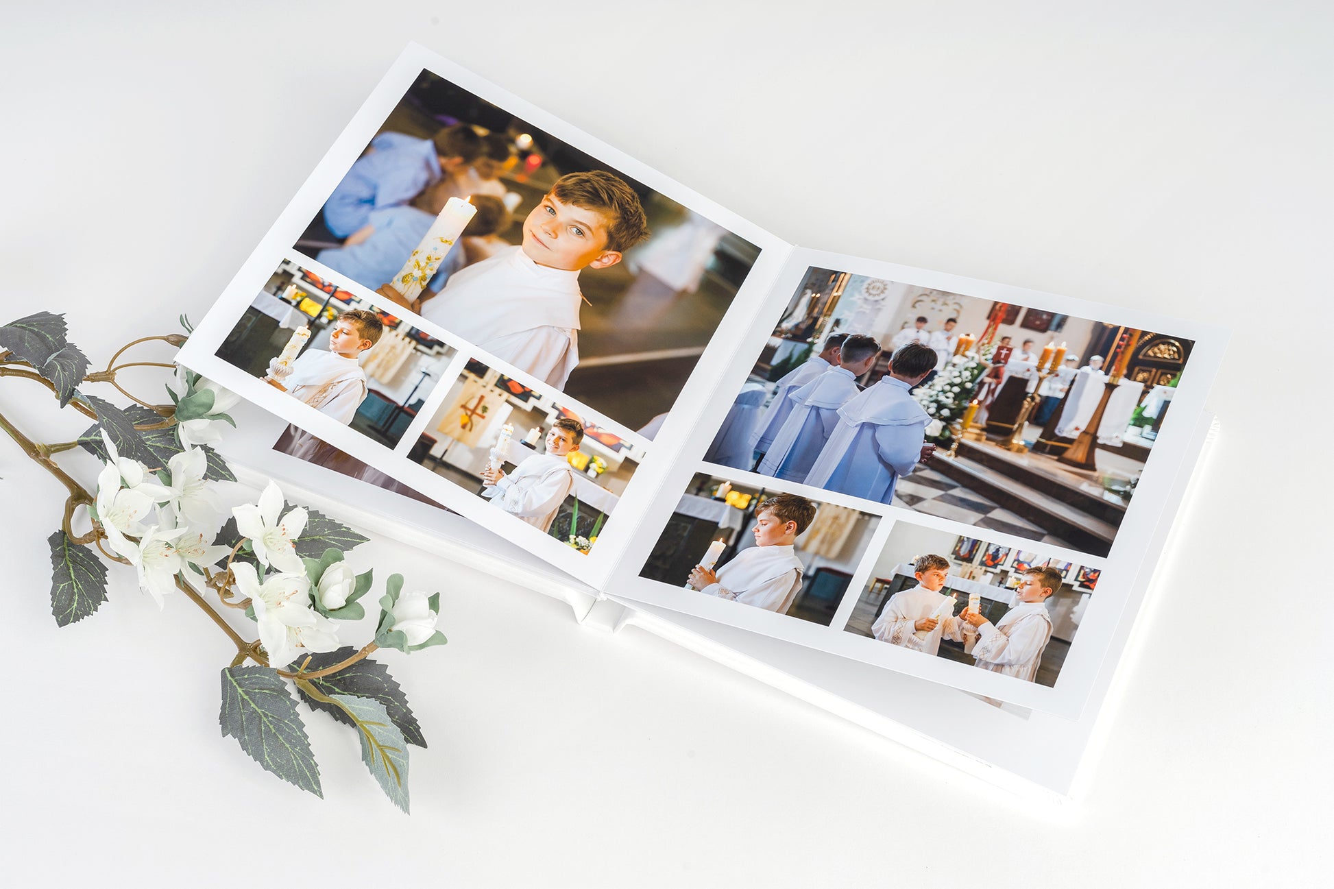 Eleganten in brezčasen spominski album v velikosti 20 x 20 cm je ustvarjen za posebne priložnosti, kot so Sveti krst, obhajilo ali birma. Fotografije so natisnjene na kakovosten trdi papir, album pa se popolnoma ravno odpira, kar omogoča prefinjeno predstavitev vaših najlepših trenutkov.