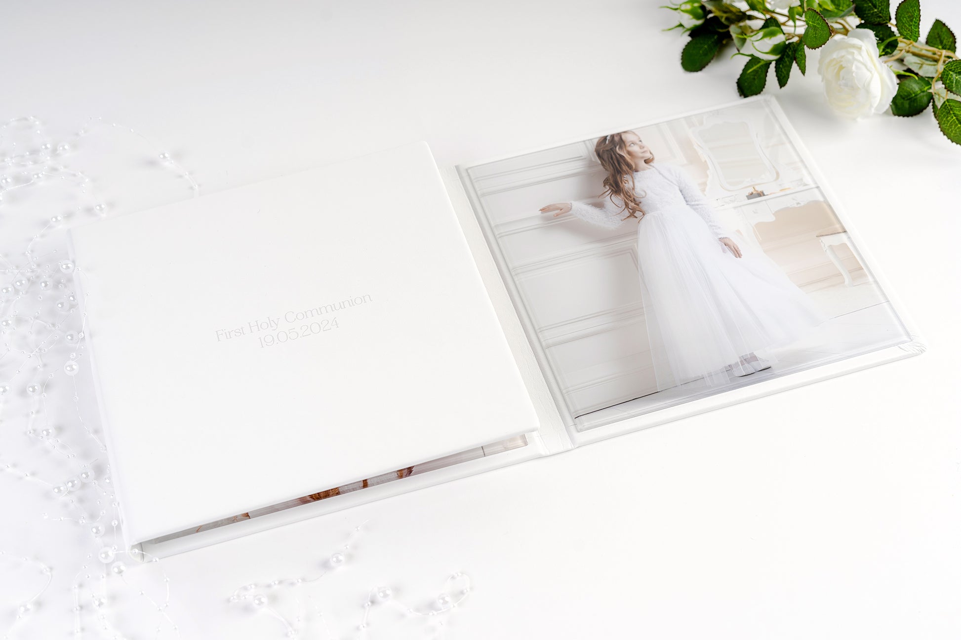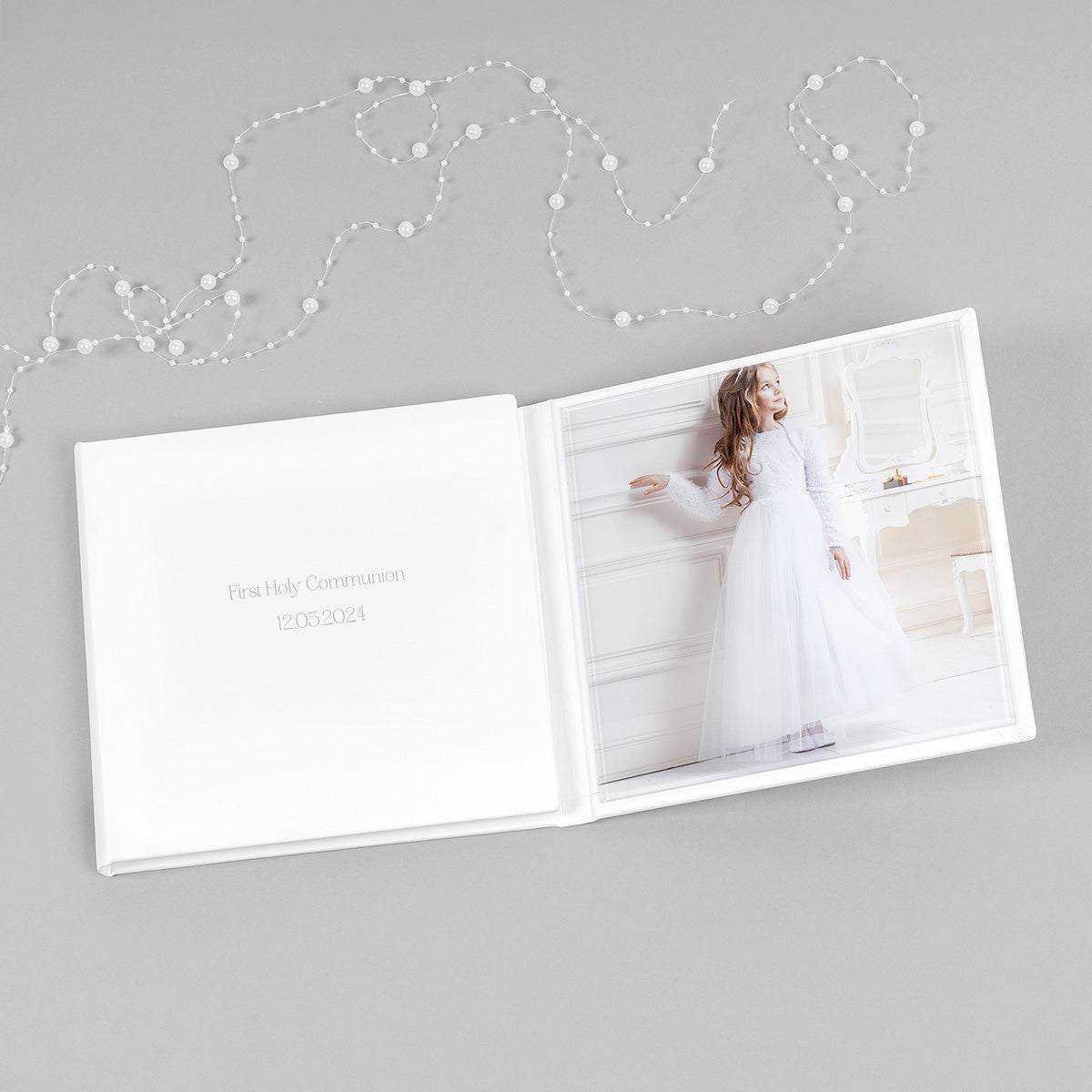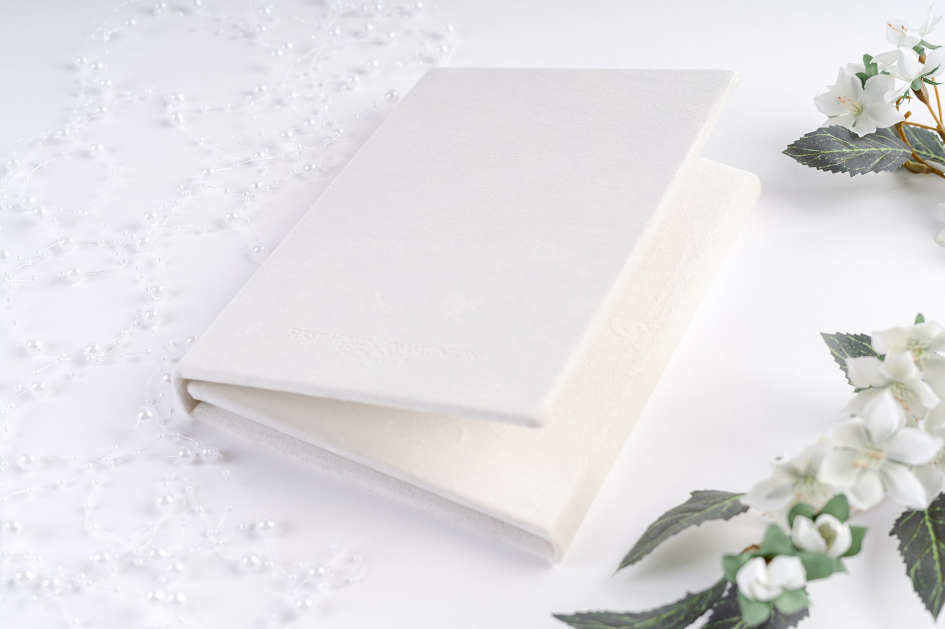 ✔ Kakovostni materiali – mehak, prijeten žamet v čisti beli barvi ali mehko umetno usnje v beli barvi dajeta izjemno estetsko vrednost in prijeten občutek na dotik. Fotografije so natančno nameščene na trdne plošče, ki zagotavljajo dolgotrajnost in vrhunski izgled.