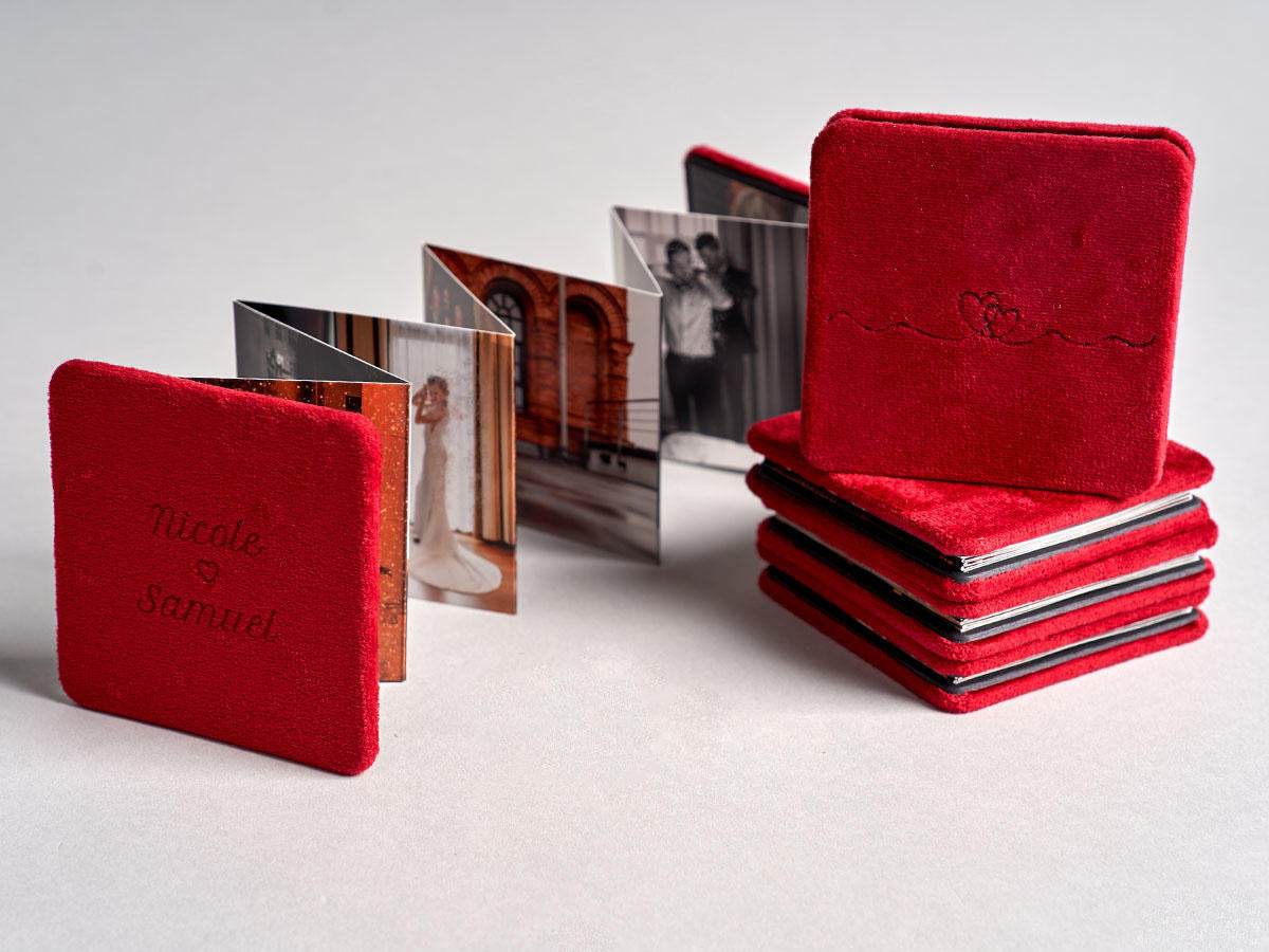 Ta majhna, zložljiva mini foto knjiga z magnetnim zapiranjem in žametno naslovnico v treh barvah, v ujame najlepše trenutke življenja: objem, poljub, ljubeč pogled... Vse te posebne spomine boste imeli vedno pri roki, pripravljene za deljenje in obujanje z najbližjimi.