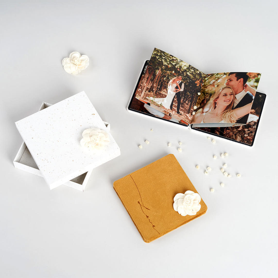Za popolno darilo lahko Mini zložljivo foto knjigo podarite v dekorativni Eko darilni embalaži.