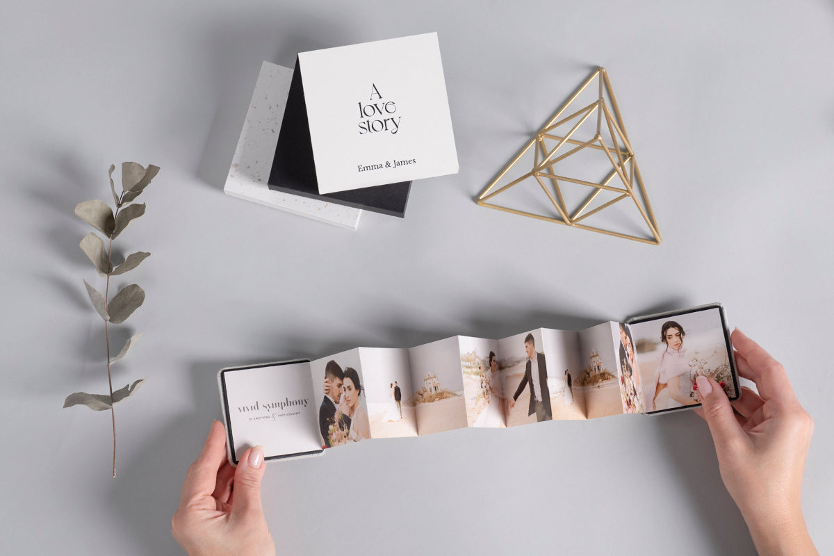 Naša Valentinova Mini zložljiva foto knjiga, ki omogoča prikazovanje najlepših fotografij v kompaktni obliki – kot nalašč za darilo, ki ohranja velike spomine v majhni knjigi!